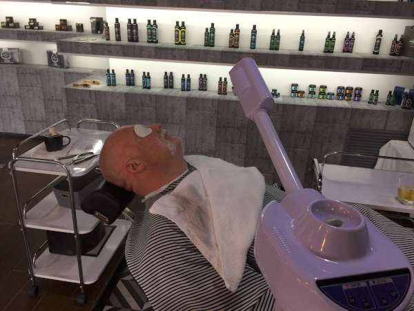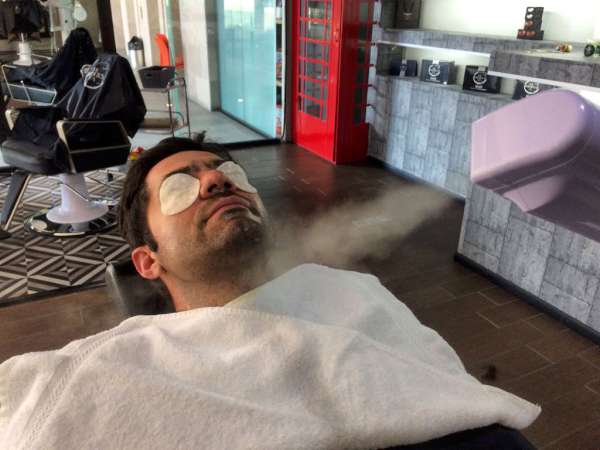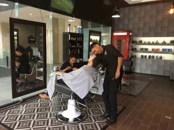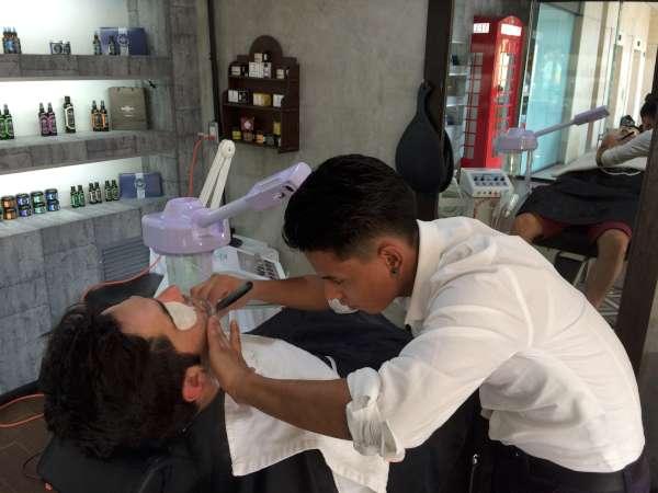 | La Barbería no se queda atrás, está basada en el protocolo italiano, que incluye recorte y delineado de barba, aplicación de toalla caliente para abrir el poro y hacer más suave la rasurada con navaja libre, se aplica toalla fría para cerrar el poro, mientras el cliente recibe un masaje de hombros y espalda. Se termina el servicio con la aplicación de pomada o cera para peinar la barba. |